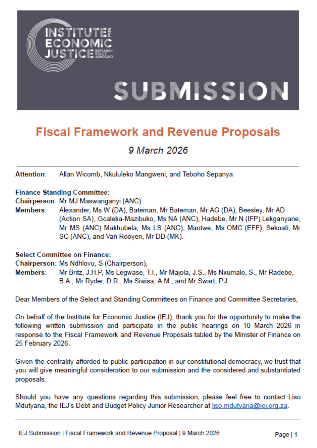 The Institute for Economic Justice (IEJ) is a progressive policy think tank based in South Africa, working to advance economic justice, dismantle inequality, and drive systemic change.