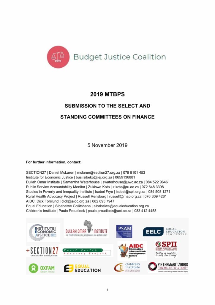 Submission by the Budget Justice Coalition in response to the 2019 Medium Term Budget Policy Statement (MTBPS)