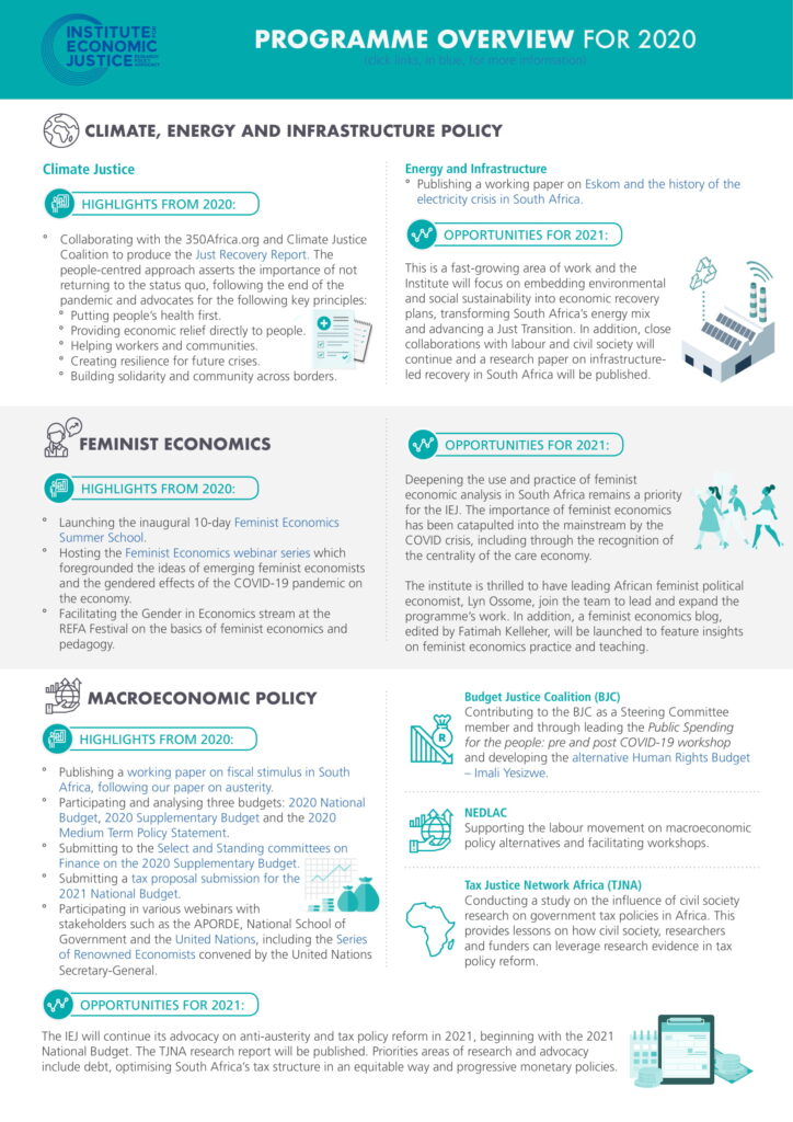 Based in Johannesburg, South Africa, the Institute for Economic Justice (IEJ) is a progressive economic policy think tank committed to advancing economic justice, systemic change, and the equitable distribution of resources to ensure rights realisation and planetary wellbeing.