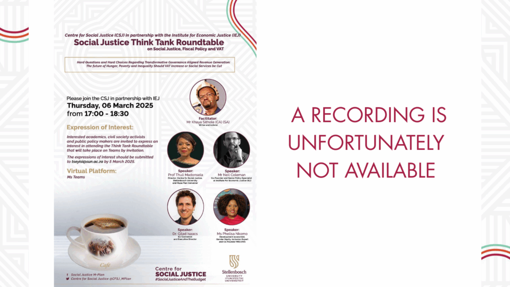 From fiscal rules and budget justice to social protection and the implications of South Africa’s new Government of National Unity, each episode is grounded in timely research and political developments. Co-hosted where relevant with partner organisations or media partners, and streamed online, the series invites public dialogue on how economic policy can serve people over profit.