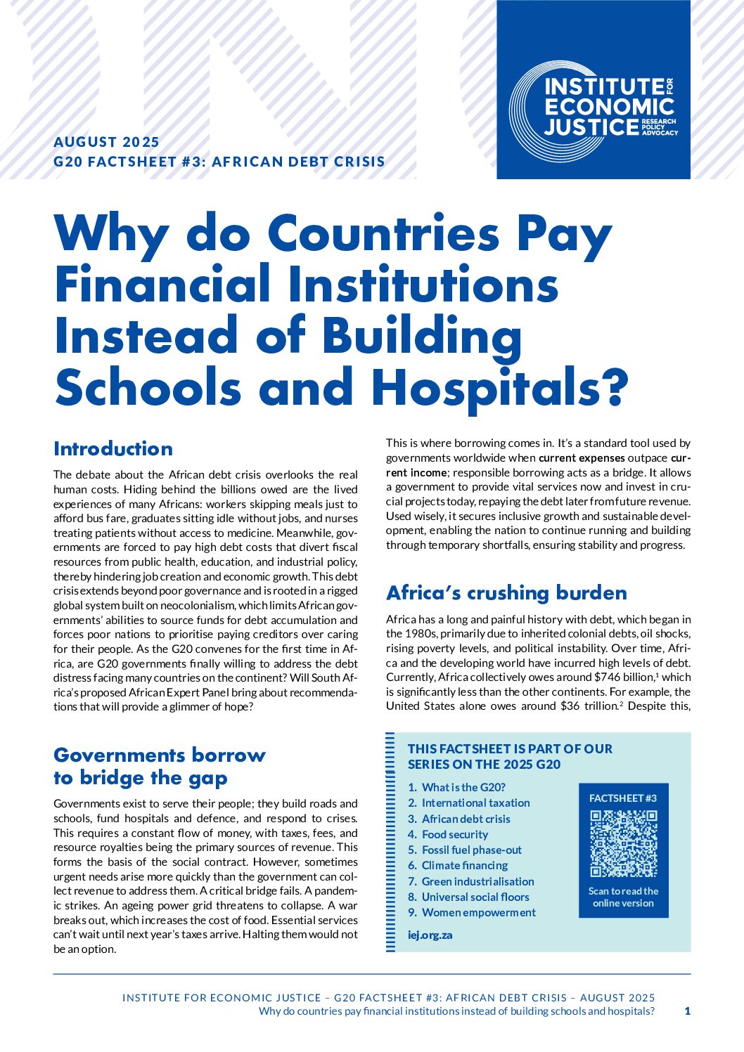 Explore the full findings and recommendations in the IEJ’s G20 African Debt Crisis Factsheet.